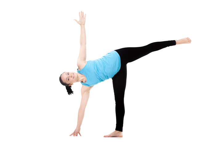 - Inhale and come back to the standing position. Repeat this pose on the other side.